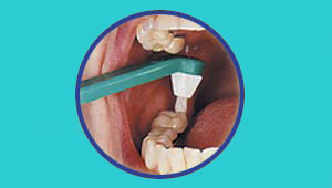 Place the end marked ‘outside’ on the edge of the gumline. Continuously follow the wavy gumline, adding a circular motion between the teeth.